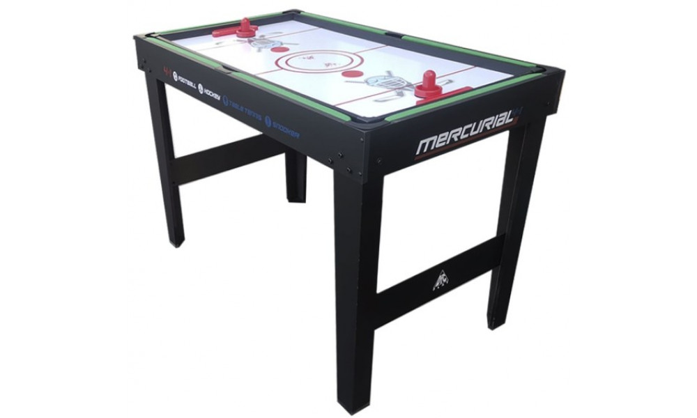 Многофункциональный игровой стол MERCURIAL 4ft — то, что нужно для большой компании! Играйте в футбол, бильярд, настольный теннис и аэрохоккей на одном столе, легко меняя игровые поля. Яркое оформление и стильный дизайн сделают игру ещё более увлекательной.